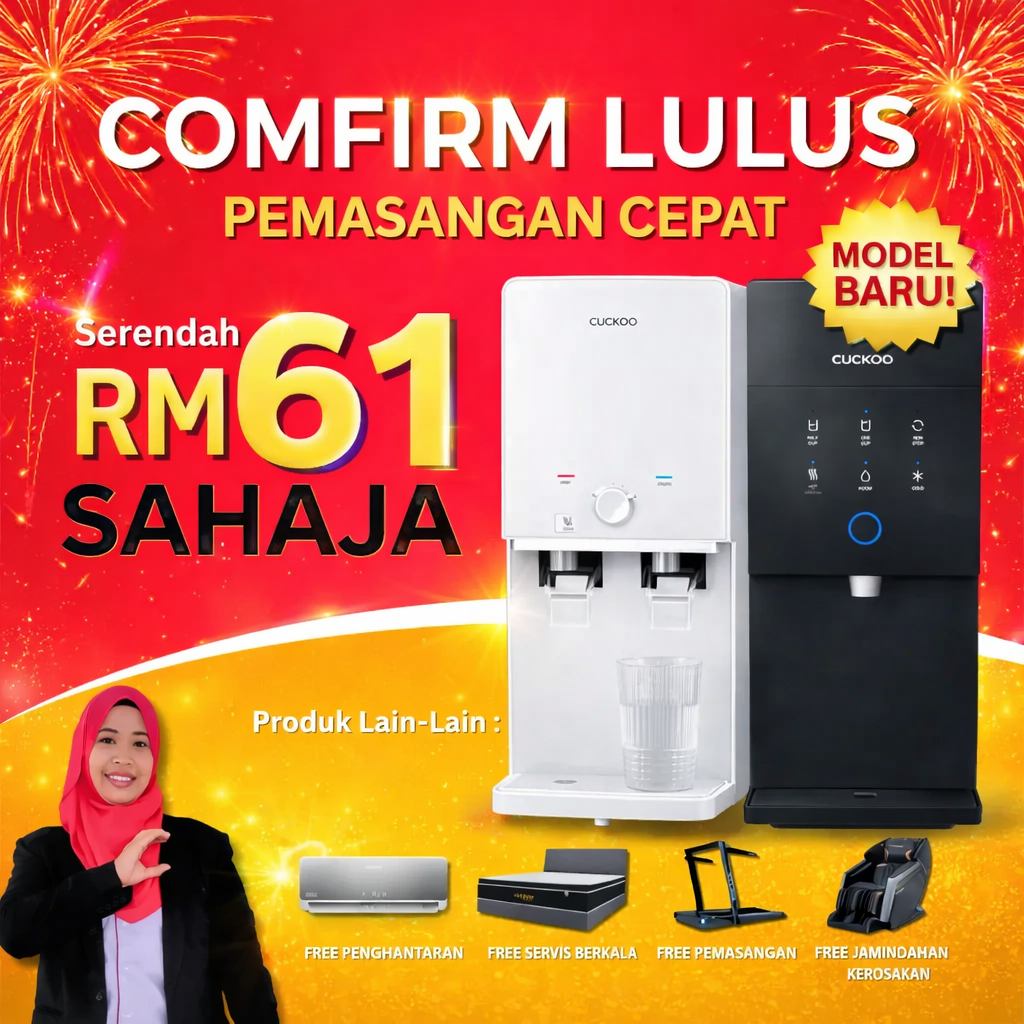 Khas Kepada Orang Kuala Sungai Baru Melaka Yang Ingin Memasang CUCKOO Pertama Kali . Inilah Masanya Dengan Promosi Waive RM10 Selama 5 Bulan